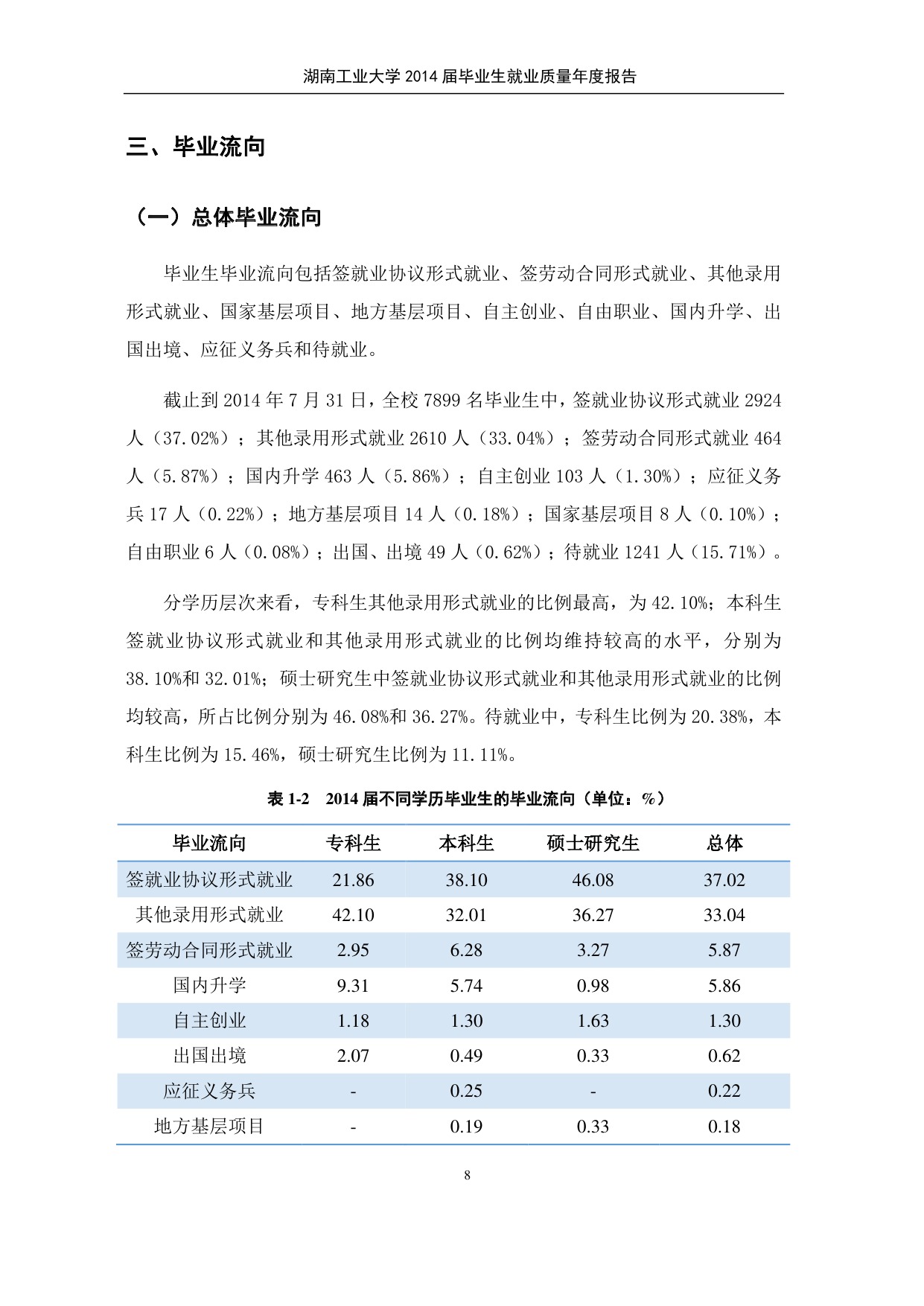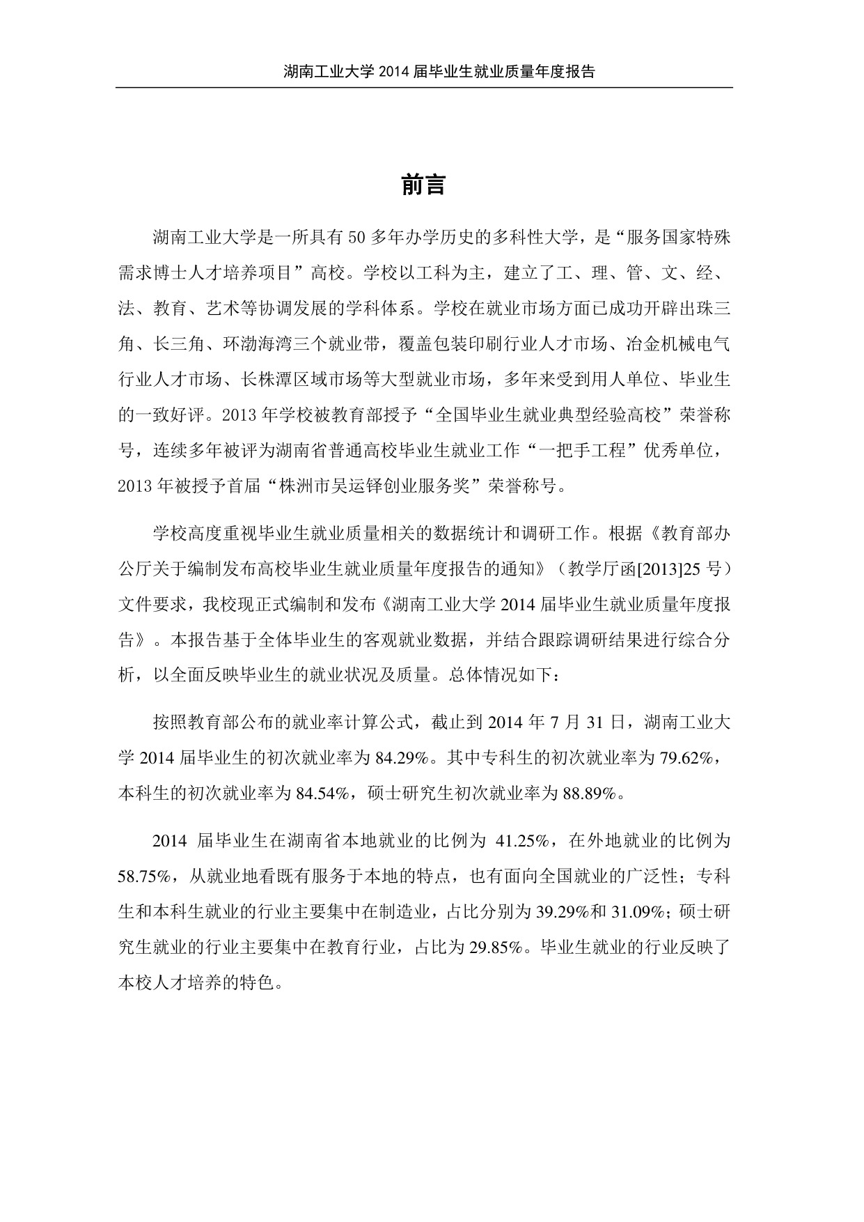 德赢AC米兰官网2014届毕业生就业质量年度报告