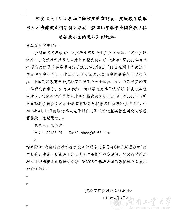 附件:高校实验室建设、实践教学改革与人才培养模式创新研讨活动暨2015年春季全国高教仪器设备展示会的通知