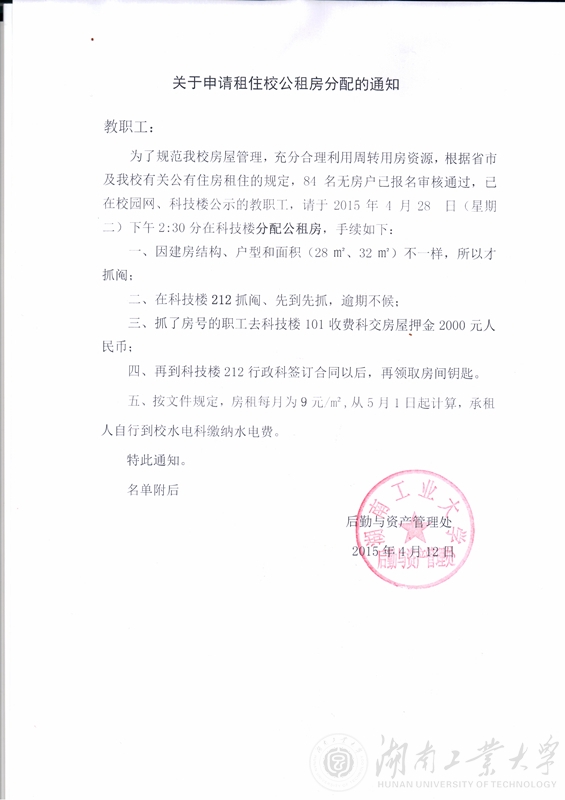 关于申请租住校公租房分配的通知