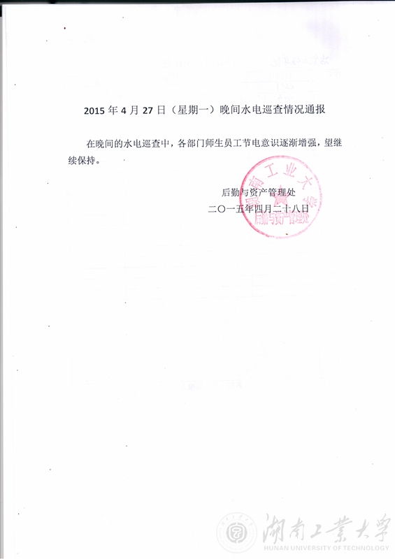 2015年第九周检查全校用水用电情况检查通报