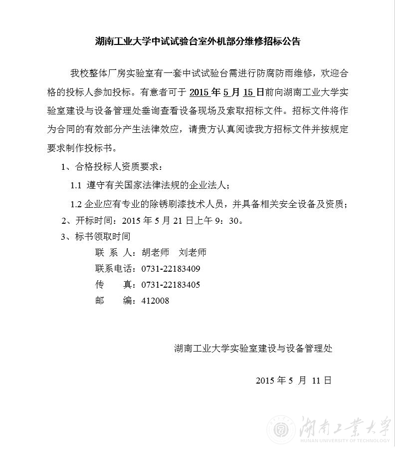 德赢AC米兰官网中试试验台室外机部分维修招标公告