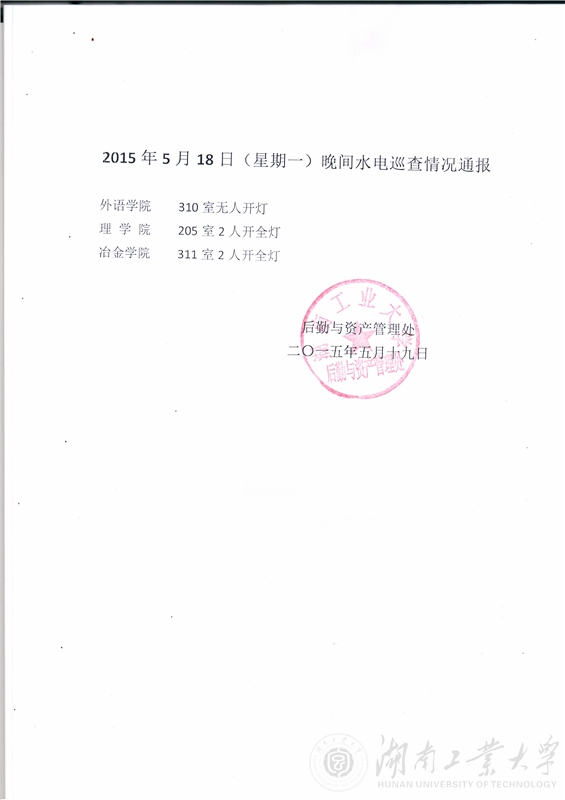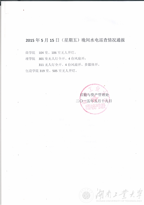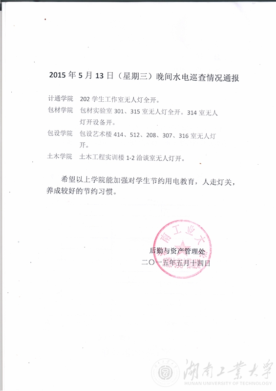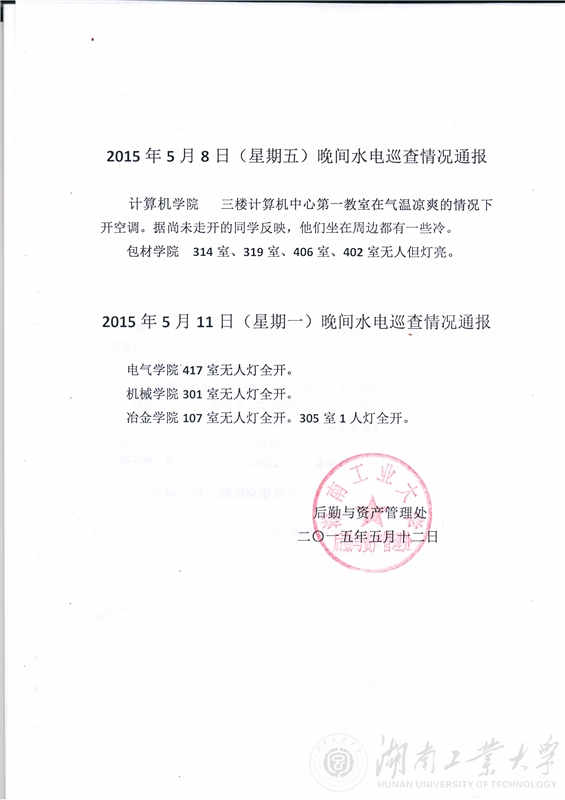 2015年第十一、二周检查全校用水用电情况检查通报