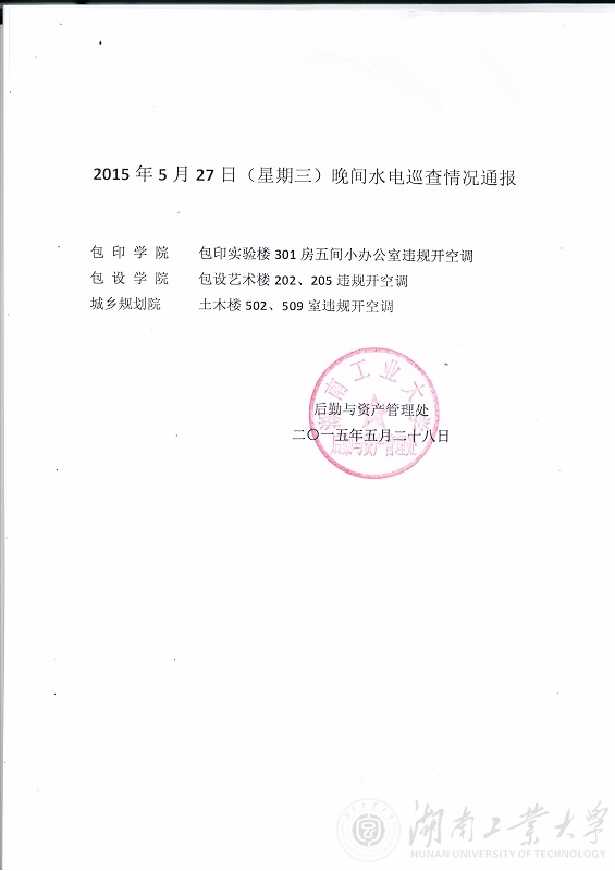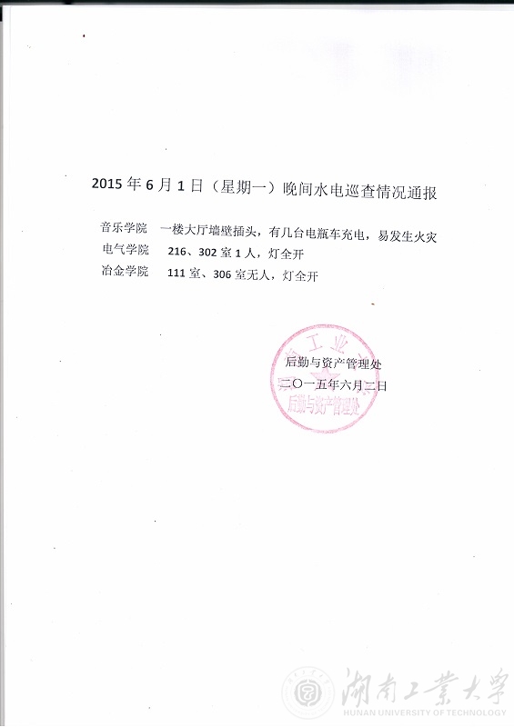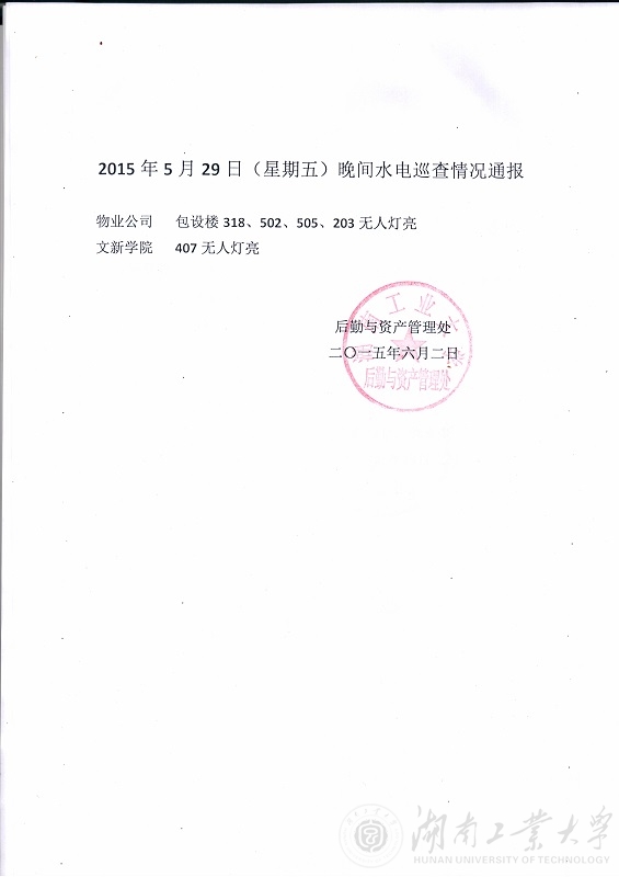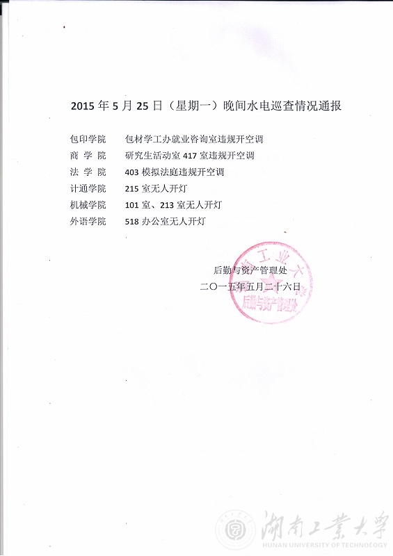 2015年第十三、十四周检查全校用水用电情况检查通报