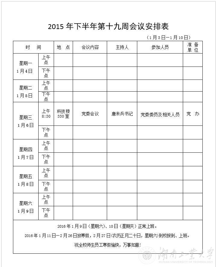 2015年下半年第十九周会议安排表