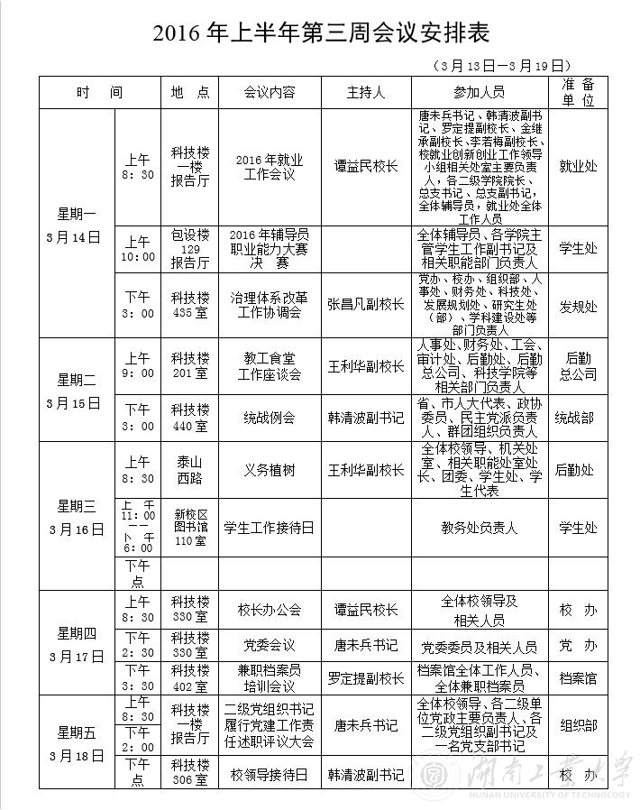 2016年上半年第三周会议安排表