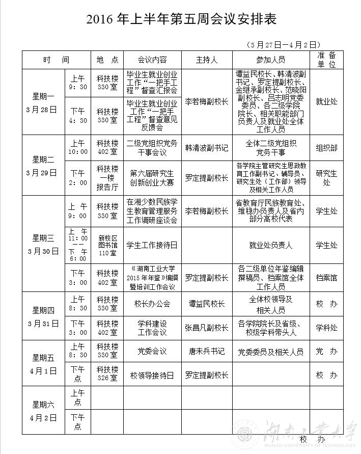 2016年上半年第五周会议安排表