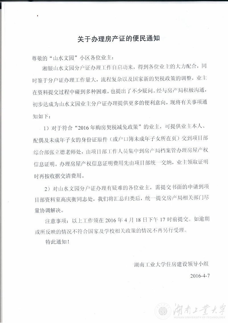 关于办理房产证的便民通知