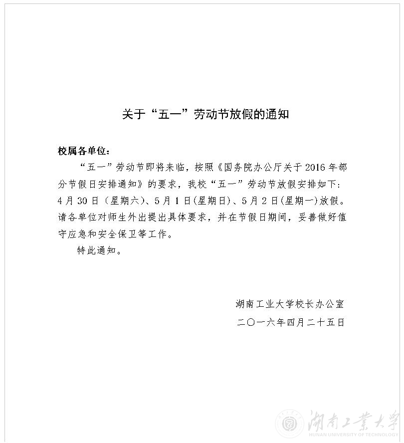 关于“五一”劳动节放假的通知