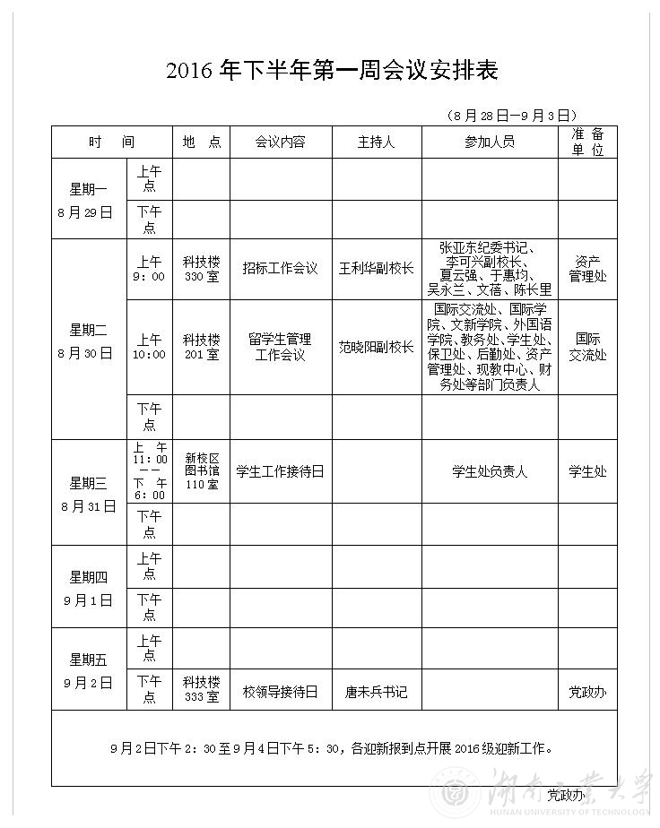2016年下半年第一周会议安排表