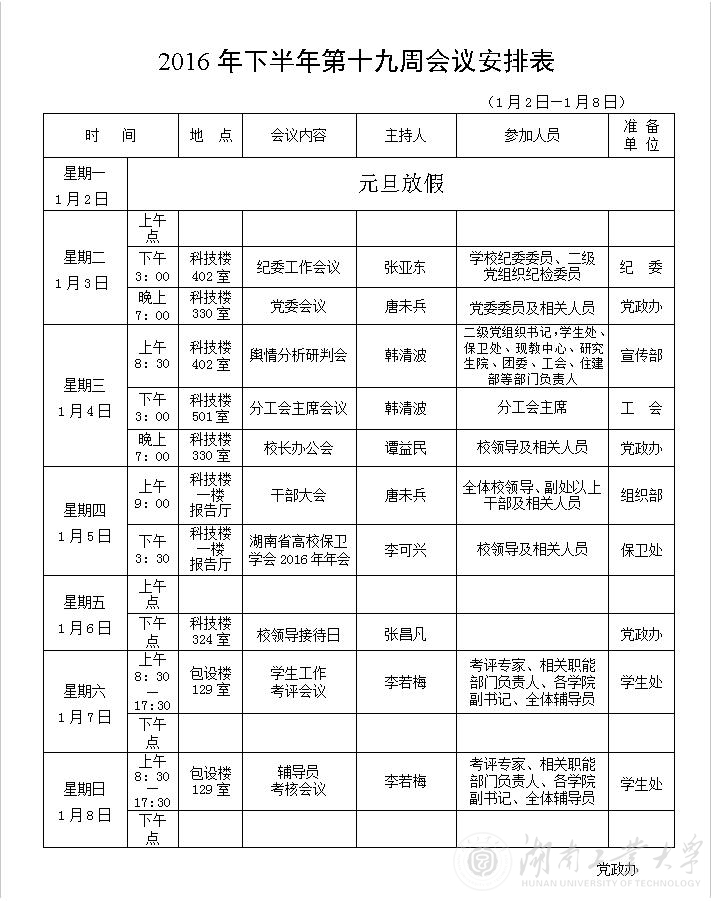 2016年下半年第十九周会议安排表