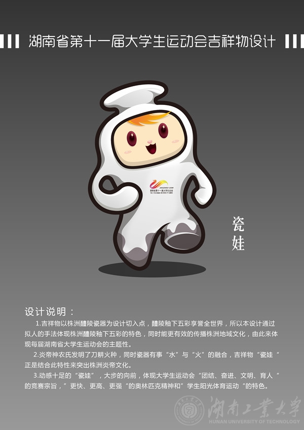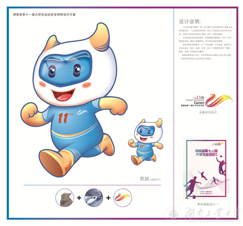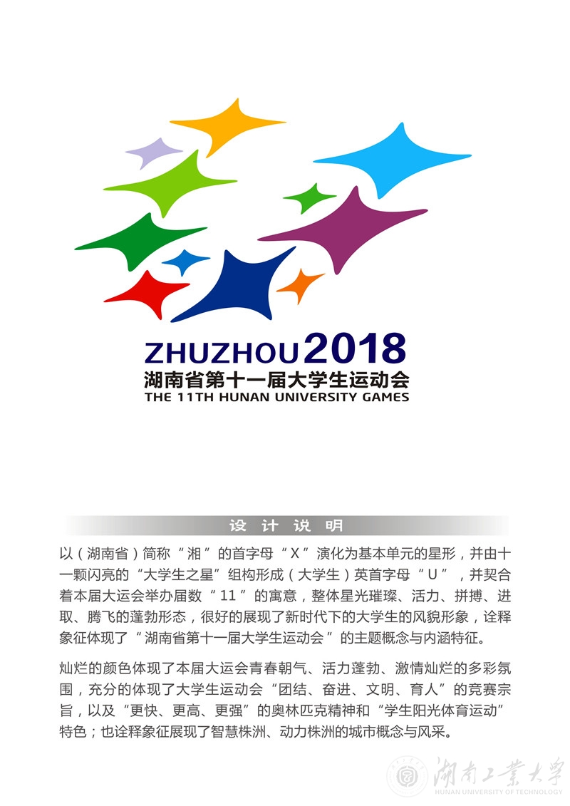 由湖南省教育厅主办、德赢AC米兰官网承办的“湖南省第十一届大学生运动会”,定于2018年9月15日在德赢AC米兰官网举行。为把本届大学生运动会办成独具魅力、富有特色的盛会,德赢AC米兰官网于2017年12月15日通过学校官方网站、官方微信、微博等媒体,向社会发出了“湖南省第十一届大学生运动会会徽、吉祥物、海报、宣传口号征集方案”,得到社会各届的广泛关注和积极参与。截止到2018年3月27日,大运会组委会共收到征集作品会徽180件、吉祥物51件、海报40张、宣传口号4474条。根据征集作品评审方案,组委会组织评审专家经过初评和复评,共评选出会徽、吉祥物、海报入围作品6件(其中录用作品1件)、宣传口号入围作品25条。为确保评选工作公平、公正,现将入选作品予以公示,公示期为4月25日至30日。