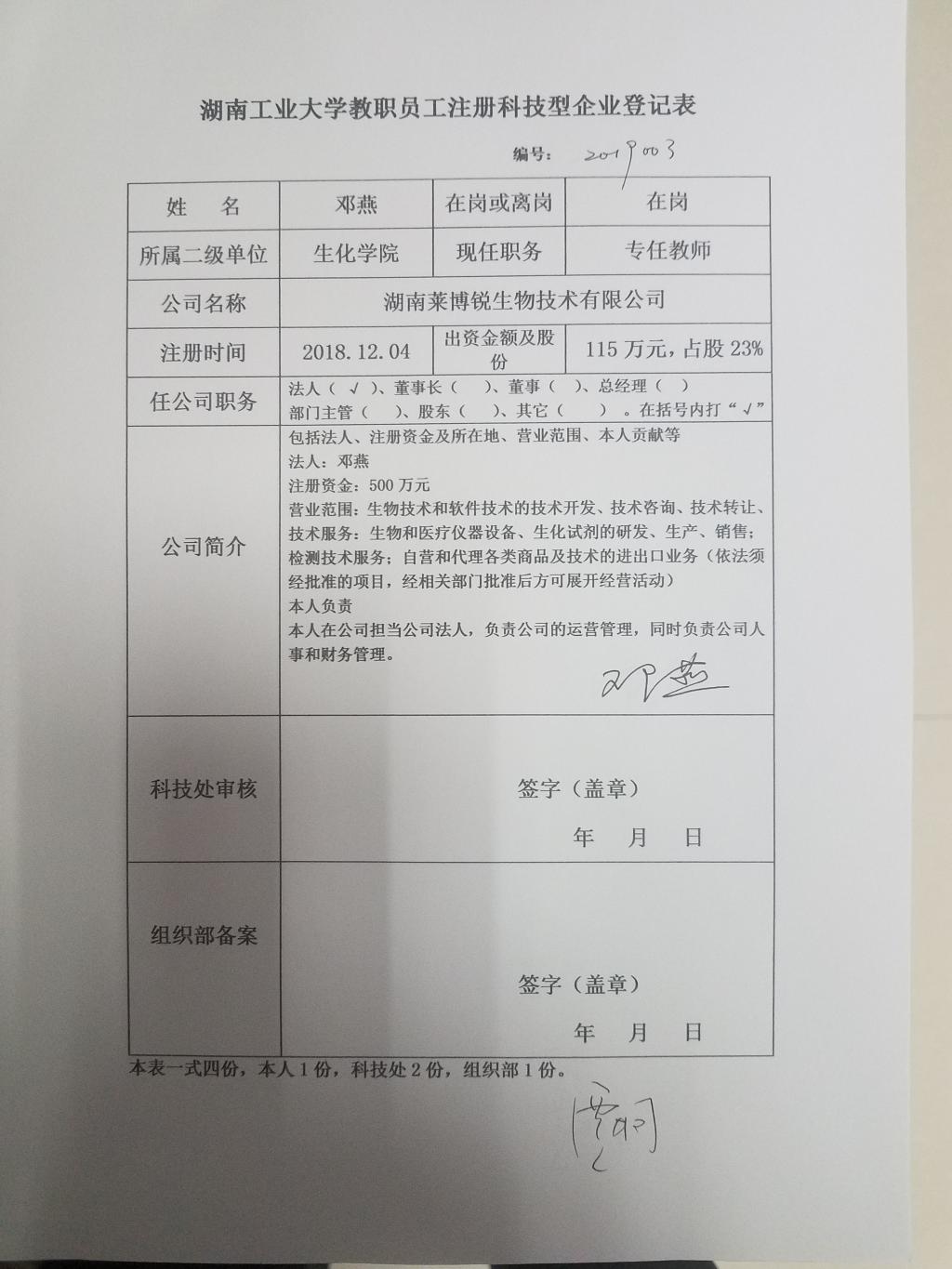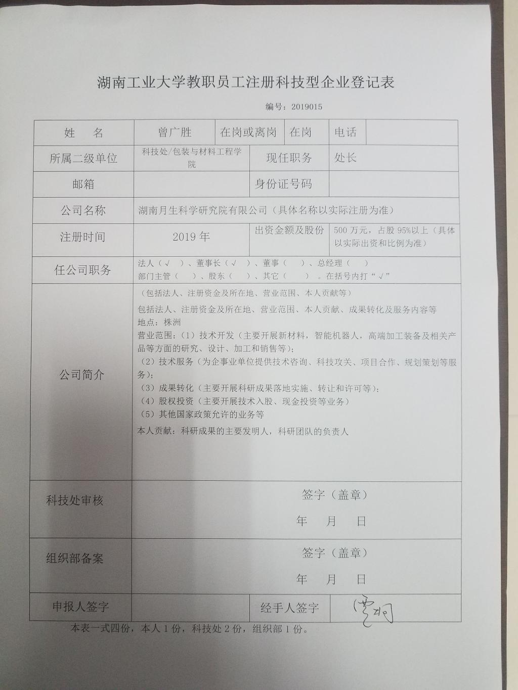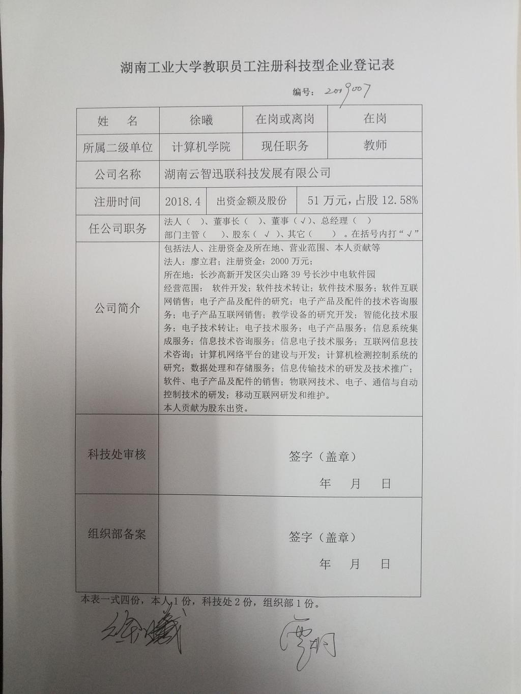 德赢AC米兰官网教职员工注册科技型企业登记清单