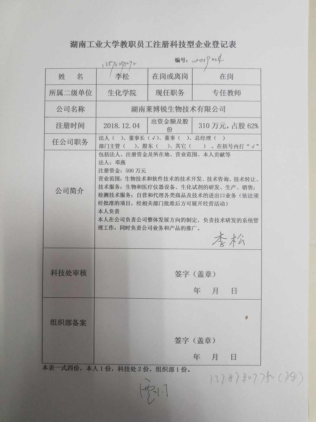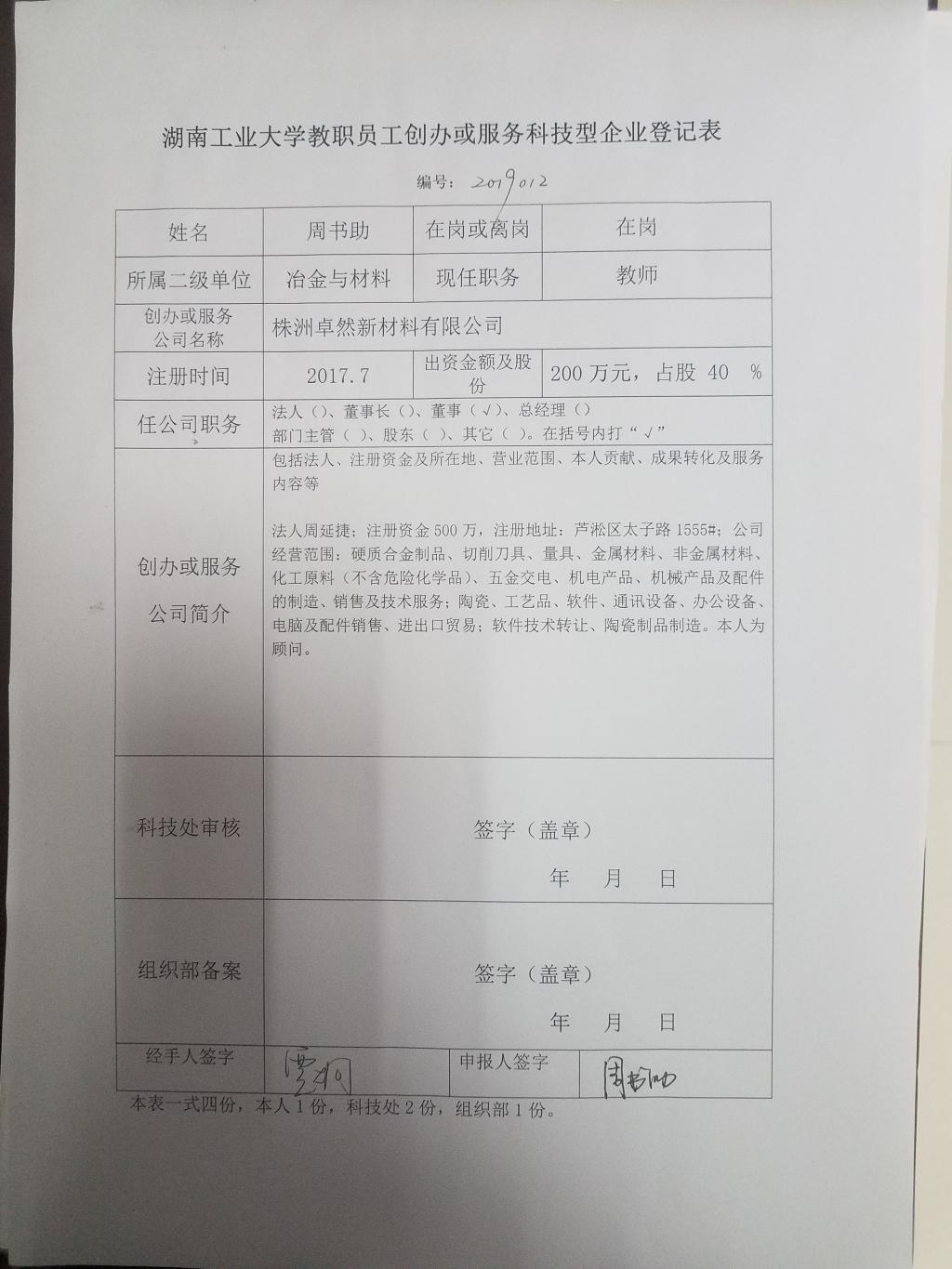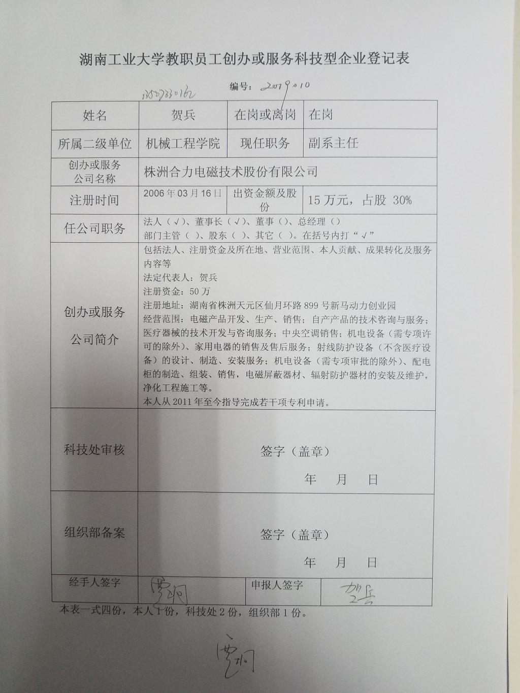德赢AC米兰官网教职员工注册科技型企业登记清单