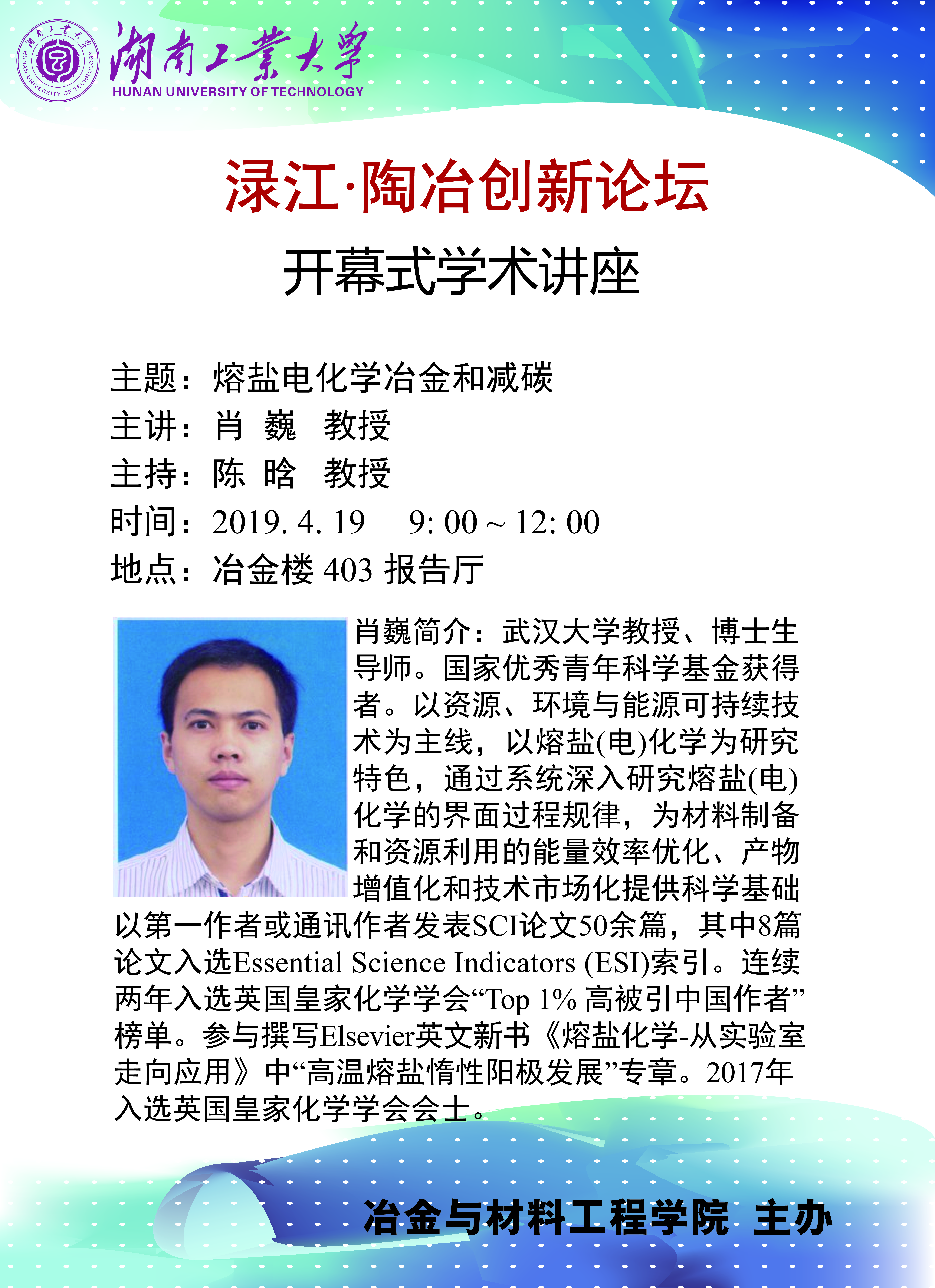 下一篇:渌江·陶冶创新论坛开幕式学术讲座---《面向可持续发展的若干电化学冶金问题初探》