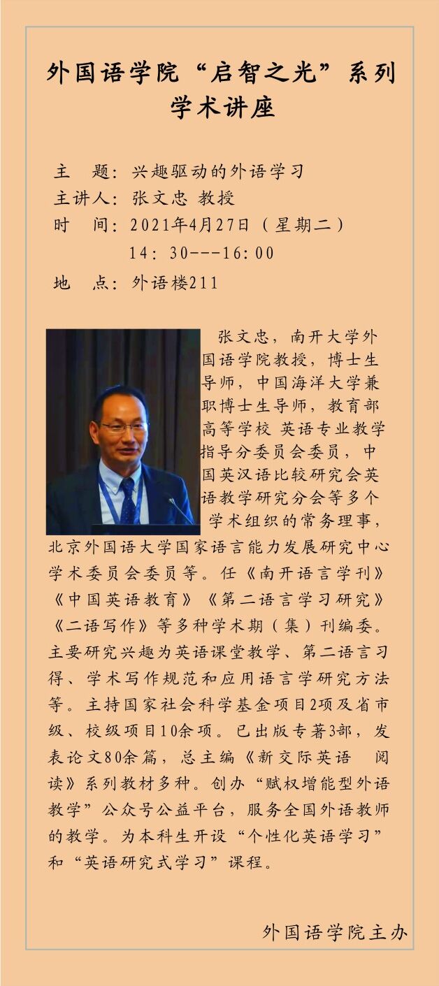 上一篇:外国语学院“启智之光”系列学术讲座---《传统与变革:英国政治现代化的特性》