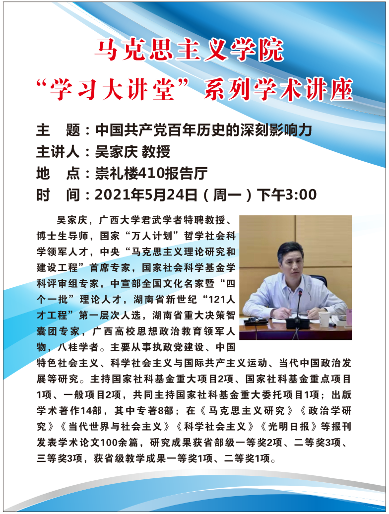 马克思主义学院“学习大讲堂”系列学术讲座---《中国共产党百年历史的深刻影响力》