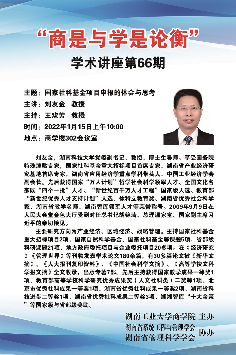 下一篇:“商是与学是论衡”系列讲座——《国家基金申报注意的几个问题》