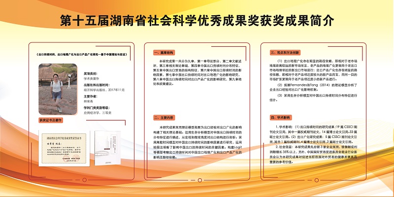 成果名称:《出口持续时间、出口地理广化与出口产品广化研究—基于中国的理论与实证》