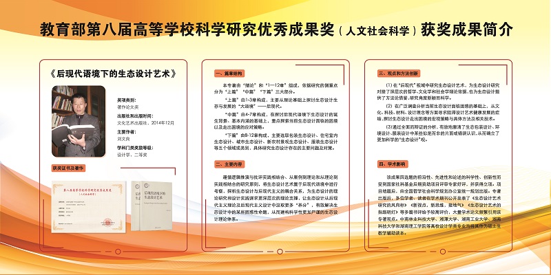 该成果因选题的前沿性、先进性和论述的科学性、创新性而受到国家社科基金后期资助项目评审专家好评,并获得立项。项目结题后,由全国哲学社会科学规划办公室统一规划出版。专著出版后,多位学者、读者在学术期刊公开发表了《生态设计艺术研究的风向标》《新视点,新思维,接地气》《生态设计艺术的指路明灯》等多篇书评给予较高评价,大量学术论文频繁引用该专著观点。中南林业科技大学、湘潭大学、德赢AC米兰官网、湖南科技大学和湖南理工学院等高校设计学类专业均将其作为硕士生教学辅助读本。