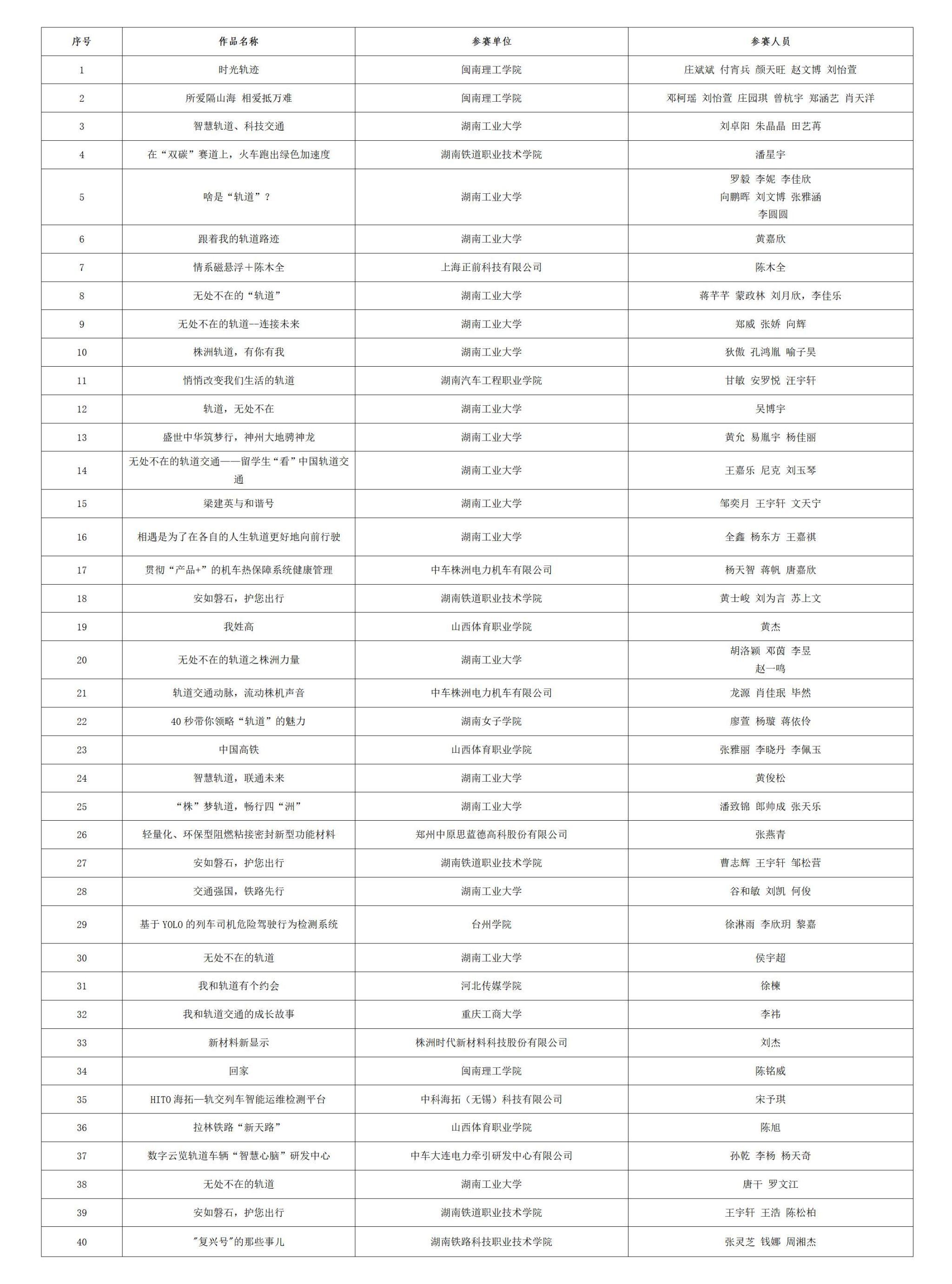 大赛围绕轨道交通产业、企业、技术和故事等进行创作,受到社会各界高度关注和积极参与,共吸引了19家高校、企业、团队报名参赛,通过作品筛选,共征集优秀作品237件,其中省內120件作品,省外117件作品。