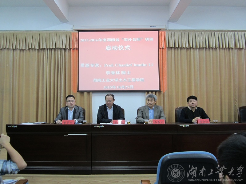 10月27日上午,德赢土木工程学科2015-2016年度湖南省“海外名师”项目启动仪式在土木工程学院210报告厅举行。国际岩土力学学会欧洲区副主席、挪威工程技术科学院院士李春林,校党委副书记彭希林出席,国际交流处负责人、土木工程学院负责人,土木工程学院教师、研究生和本科生代表参加了仪式。