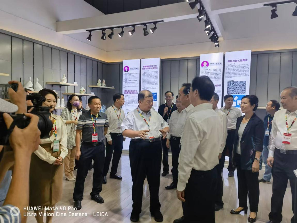 博览会期间,刘望亲临展馆,对展览给予了充分肯定,并亲自为巡馆的省市领导介绍学校办学成果。德赢陶瓷材料博士团队的先进陶瓷研发成果引起了省市领导的高度关注,刘望与省市领导就相关成果的产业化落地、科教融合等方面进行了深入交流。
