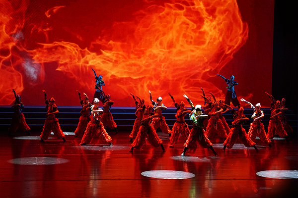 大合唱《祖国颂》拉开了演出序幕,“我们伟大的祖国,进入了社会主义时代!”伴着清脆激昂的钢琴声,88名学生放声高歌,一字一句饱含了对祖国的无限热爱之情;男子群舞《草原汉子》巧妙地将“夜凉如水”与“热情似火”这两个意象结合起来,生动展现了蒙古族汉子沉敛通达的内心和热烈奔放的性格;音乐学院“悠扬”民乐团表演的民乐合奏,将《花好月圆》《步步高》这两首家喻户晓的曲目中所蕴含的意境原汁原味地展现了出来;独唱节目《鹰翔》把高亢雄浑的男声融入悠扬空灵的曲调,尽显鹰击长空、万类霜天竞自由的豪迈,表达了对全体2019届毕业生敢想敢为、敢拼敢闯的美好祝愿。