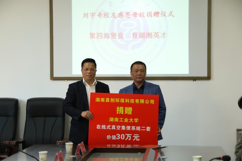 10月26日,德赢优秀校友、湖南真创环保科技有限公司董事长刘宇奇在城市与环境学院向母校捐赠价值30万元的在线式真空集便系统二套,用于对真空排水技术的科研和教学。校长谭益民、副校长李可兴,党政办、科技处、基建处、校友办秘书处、城市与环境学院等相关部门负责人及学院师生代表出席,李可兴主持仪式。