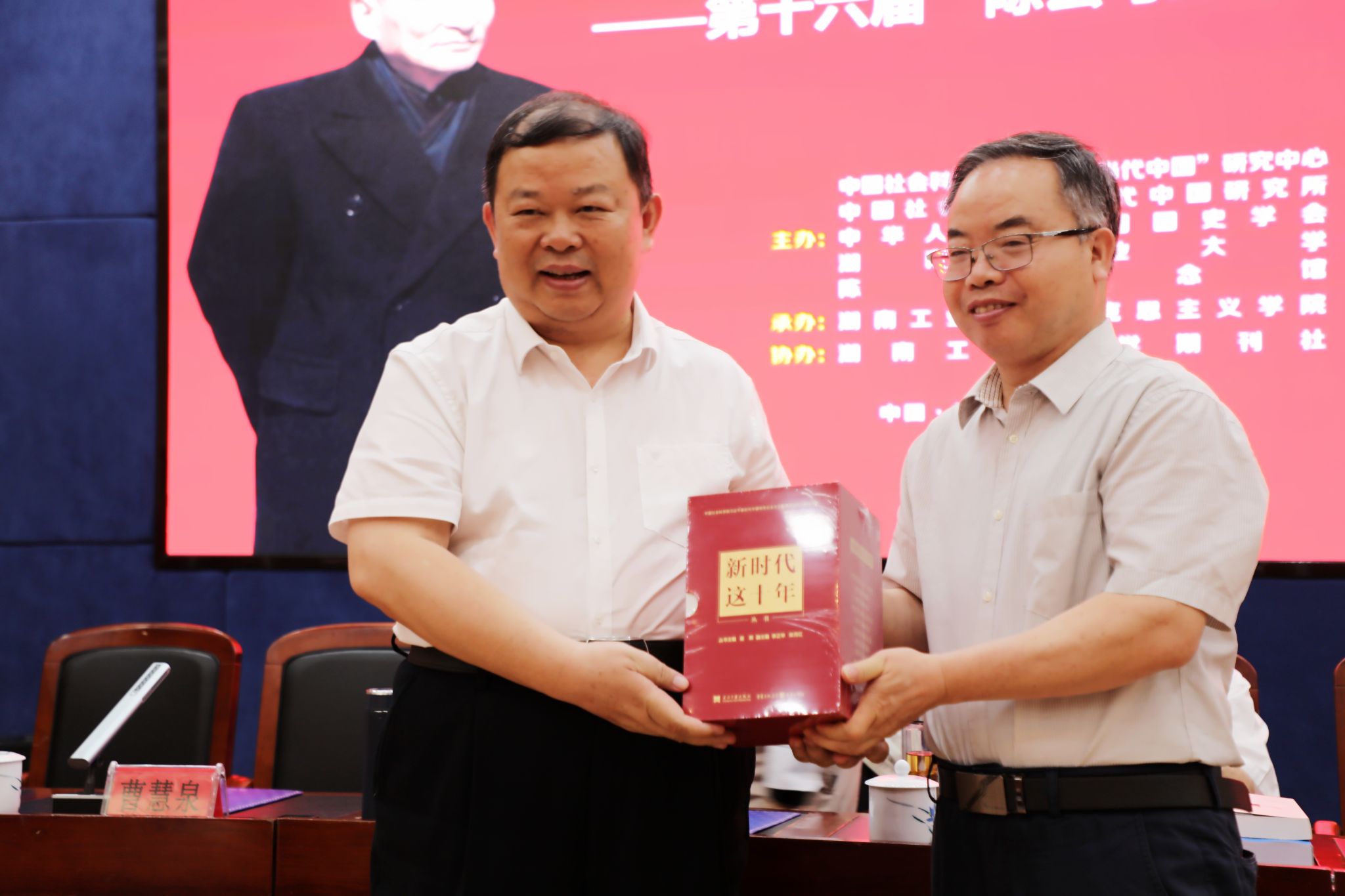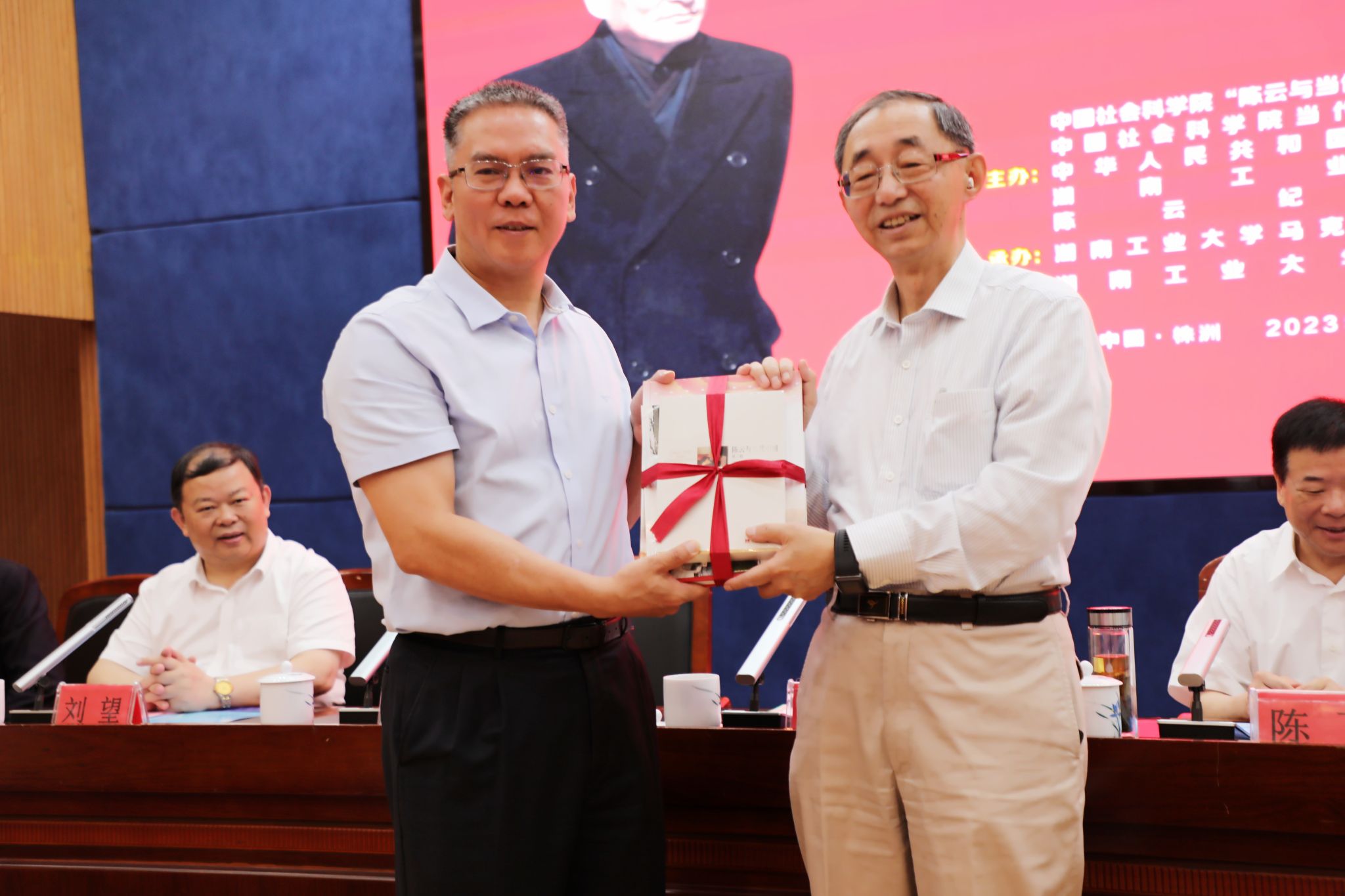 中共株洲市委书记曹慧泉代表株洲市委市政府向陈云同志次女陈伟华赠送了陶瓷画像。中国社会科学院原副院长兼当代中国研究所原所长、中华人民共和国国史学会会长、中国社会科学院“陈云与当代中国”研究中心理事长朱佳木向市委书记赠送《陈云与当代中国》(第三辑)。当代中国研究所副所长李正华向株洲市委书记、德赢党委书记刘望赠送《新时代这十年》丛书。