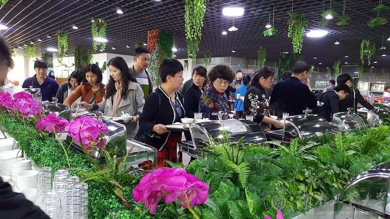 新校区教工餐厅设在第5食堂2楼,装饰一新的餐厅,丰富可口的菜品,吸引了众多教职工就餐。大家对自助就餐方式、优雅整洁的环境以及餐厅工作人员的热情服务给予了好评。