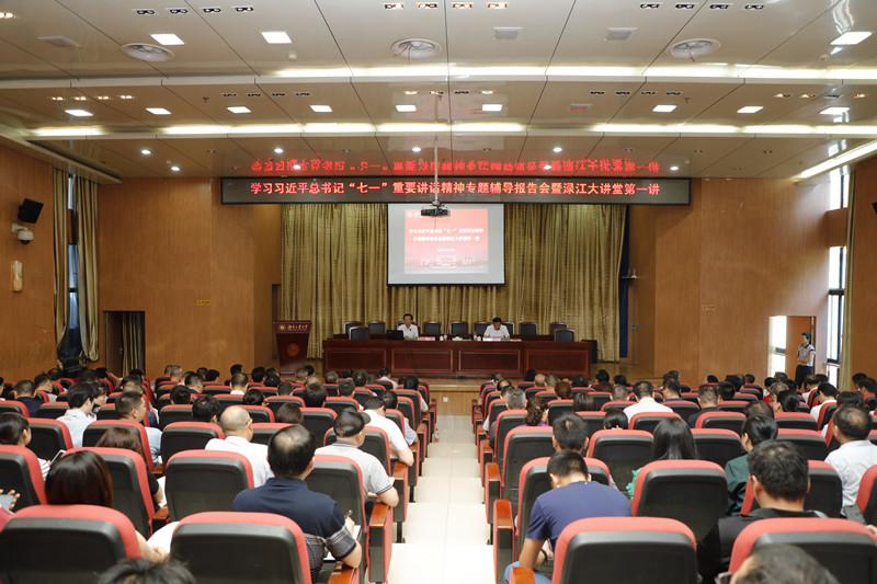 7月12日上午,德赢学习习近平总书记“七一”重要讲话精神专题宣讲报告会暨渌江大讲堂第一讲在崇德楼报告厅开讲。党史学习教育省委宣讲团成员、中共湖南省委党校(湖南行政学院)常务副校(院)长曹健华教授来校作题为《为实现中华民族伟大复兴不懈奋斗——学习贯彻习近平总书记“七一”重要讲话精神》专题报告,党委书记谭益民主持并讲话,在校校领导,副处级以上干部聆听了报告。