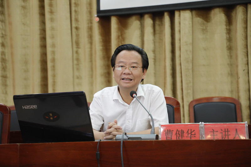 曹健华教授从“百年征程 辉煌成就”“建党精神 铸就伟业”“接续奋斗 迈向复兴”等三个方面,结合党情、国情、省情,深刻阐述了习近平总书记“七一”重要讲话的重大意义、主要内容和丰富内涵,深入解读中国共产党百年奋斗的光辉历程、伟大成就、宝贵经验和实践启示,解读伟大建党精神的深刻内涵和时代价值,解读在新征程上以史为鉴、开创未来的根本要求,并围绕讲话中提出的一系列新思想新观点新要求进行了系统讲解。他强调,全体党员要把思想认识统一到“七一”重要讲话精神上来,切实在学懂、弄通、做实上下功夫;要把学习“七一”重要讲话精神,作为全党开展党史学习教育的重要内容,切实推动学习往深里走、往实里走、往心里走;要把学习习近平总书记“七一”重要讲话精神同总结经验、观照现实、推动工作结合起来,把学习的成效不断地转化为我们工作的动力和实效。