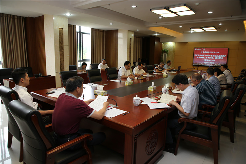 6月23日下午,校党委理论学习中心组开展2020年第六次集体学习,专题学习习近平新时代中国特色社会主义思想的基本精神、基本内容、基本要求。在校校领导参加,党群部门负责人、马克思主义学院党总支班子成员列席,党委书记谭益民主持学习会。