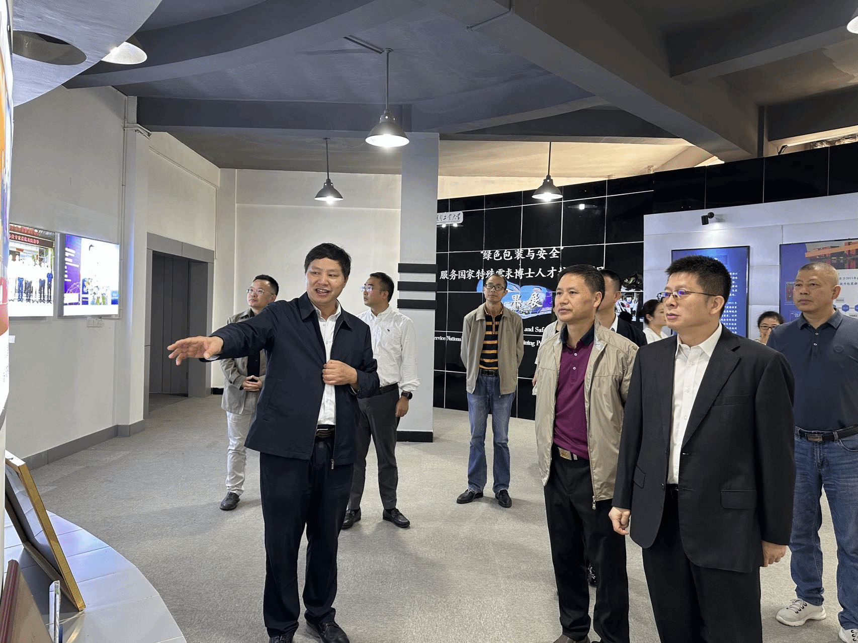 施平处长一行走访了包装设计艺术学院、包装与材料工程学院、公共计算机中心、图书馆、校史馆以及学生宿舍,体验学生学习和生活环境,重点参观了材料科技成果展、可持续发展设计作品展、工业株洲∙ 制造名城绘画作品展等,探访德赢工业底色与包装特色。