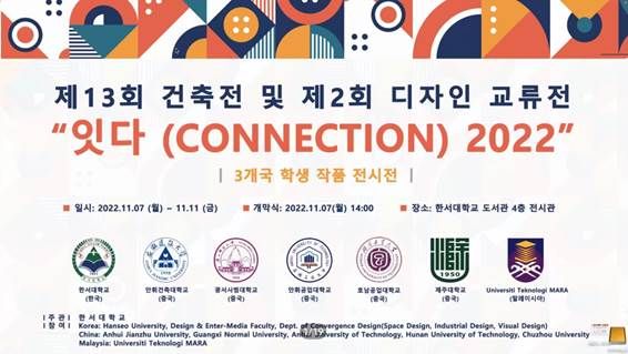 本次展览以“CONNECTION 2022”为主题,以青春的热情和崭新的思考为基点,展现了青年设计师对设计的理解、对生活的领悟、对现实问题的反省以及对真善美的探索,充分反映了各高校的专业特点和人才培养特色。主办方期待以此为契机,为韩•中•马三国大学生提高设计质量,充分发挥文化艺术和设计创造作用,并期待展览能成为连接中国、韩国、马来西亚三国设计文化的交流平台。