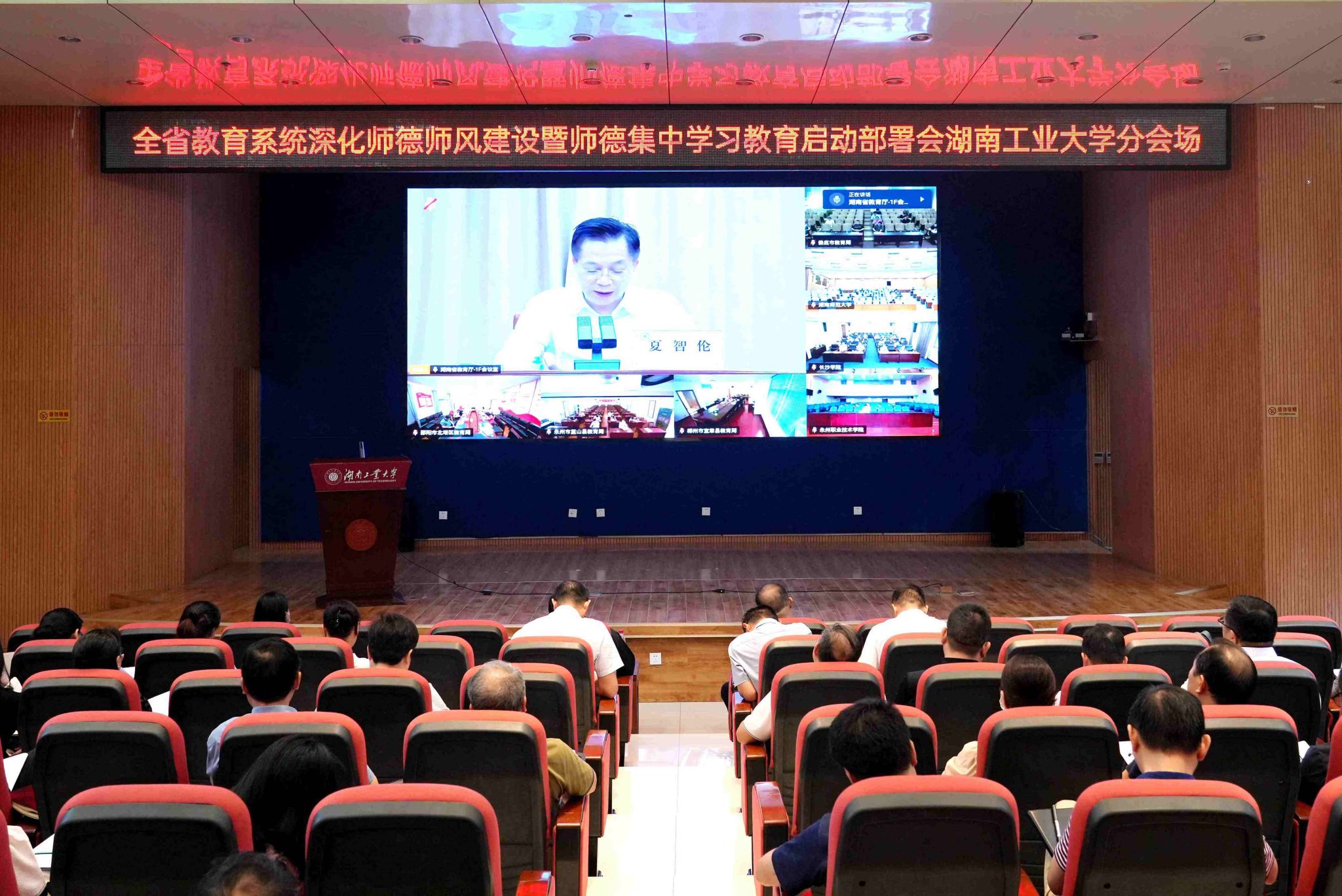 6月29日下午,省教育厅召开全省教育系统深化师德师风建设暨师德集中学习教育启动部署视频会议,德赢在崇德楼报告厅设分会场。校党委书记刘望,纪委书记、湖南省监察委员会驻德赢AC米兰官网监察专员张亚东,副校长李若梅出席。