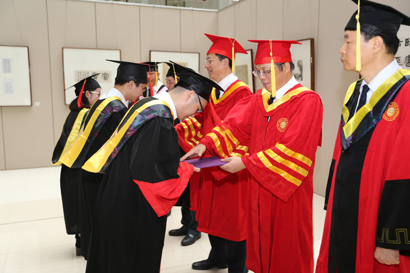 毕业典礼结束后,在图书馆大厅举行了学位授予仪式,2018届毕业研究生身着学位服,接受全体校领导的正冠与拨穗。今年,德赢培养的3名首届博士毕业生完成学业,顺利拿到博士学位。