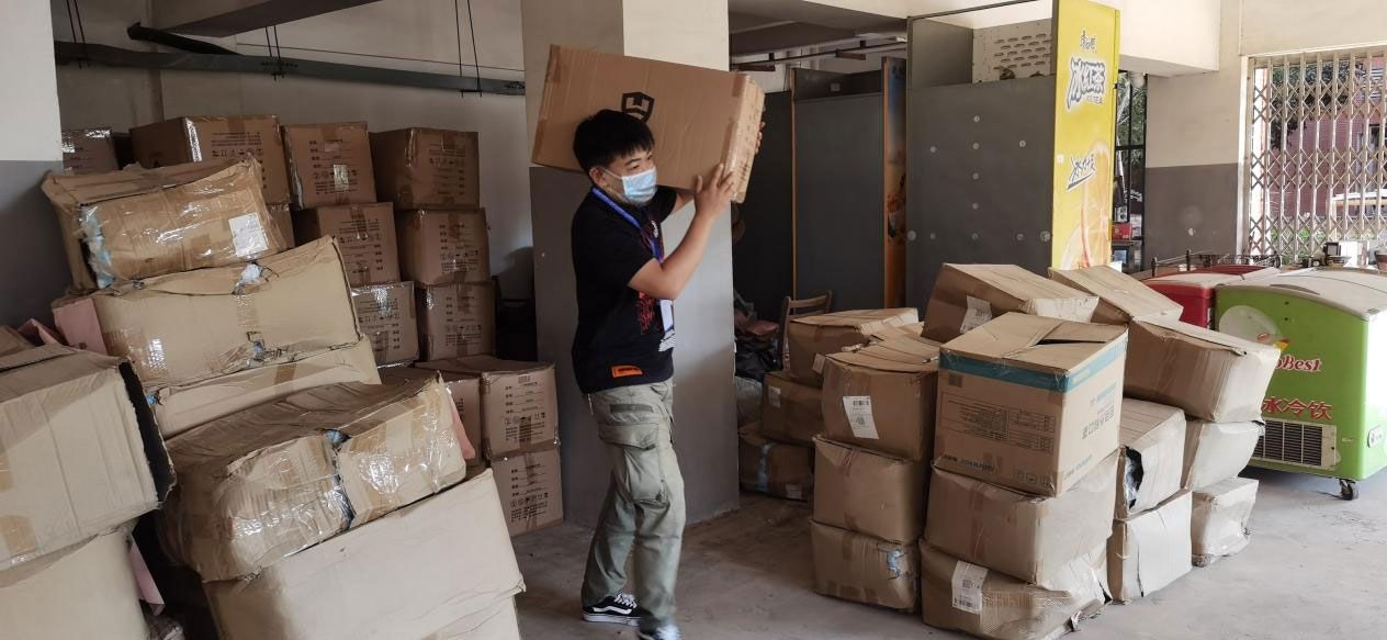 夜已深,又有一车物资到校,兄弟们,干活去。