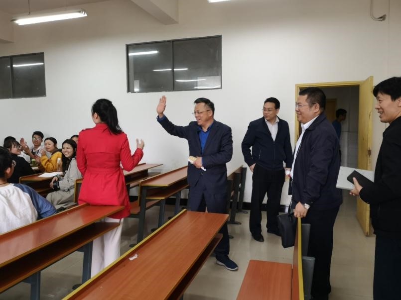 为贯彻落实习近平总书记在学校思想政治理论课教师座谈会上的重要讲话精神,把脉德赢思政课教学, 5月9日上午,党委书记、校长谭益民,副校长范晓阳,党委委员、党委宣传部部长、马克思主义学院党总支书记(兼)易棉阳走进崇学楼224教室,随堂听颜胤丰老师讲授的《中国近现代史纲要》课程。马克思主义学院班子成员随同听课。