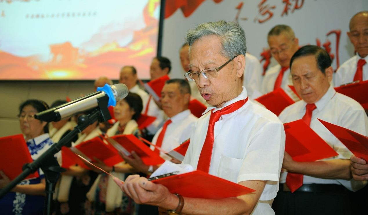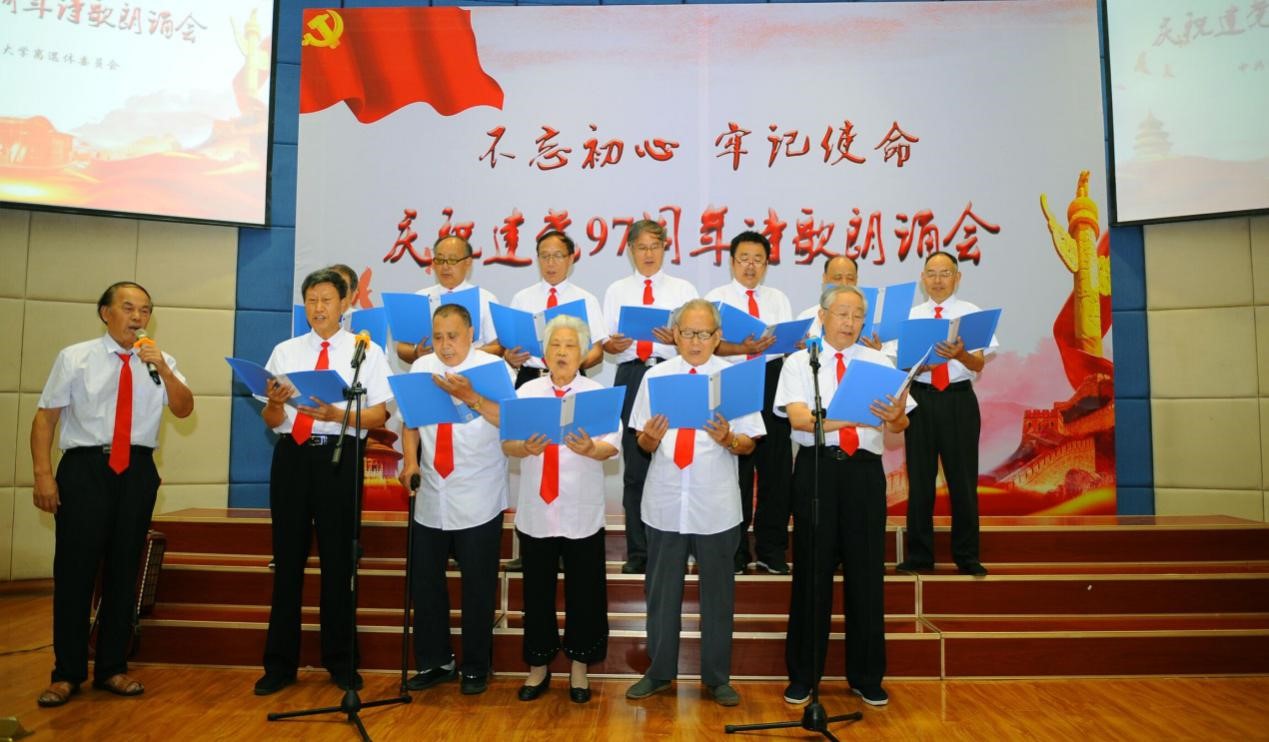 不畏酷暑,不惧高龄,老同志们以饱满的热情,整齐的仪态,充分展示了离退休党员的精神风采。朗诵的诗歌大部分出自老同志原创,《不忘初心,牢记使命》《周总理的办公桌》、《启航新时代,撸起袖子加油干!》《有一首歌》等诗歌既紧扣活动主题,又文采飞扬、朗朗上口,而《回延安》《七律•长征》《东方红》等经典作品让大家仿佛回到了激情燃烧的岁月。