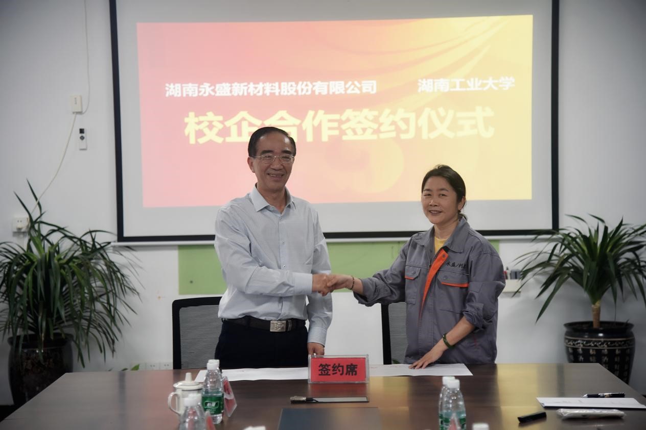 会后,蒋建初与湖南永盛新材料股份有限公司相关负责人签订了校企合作协议。