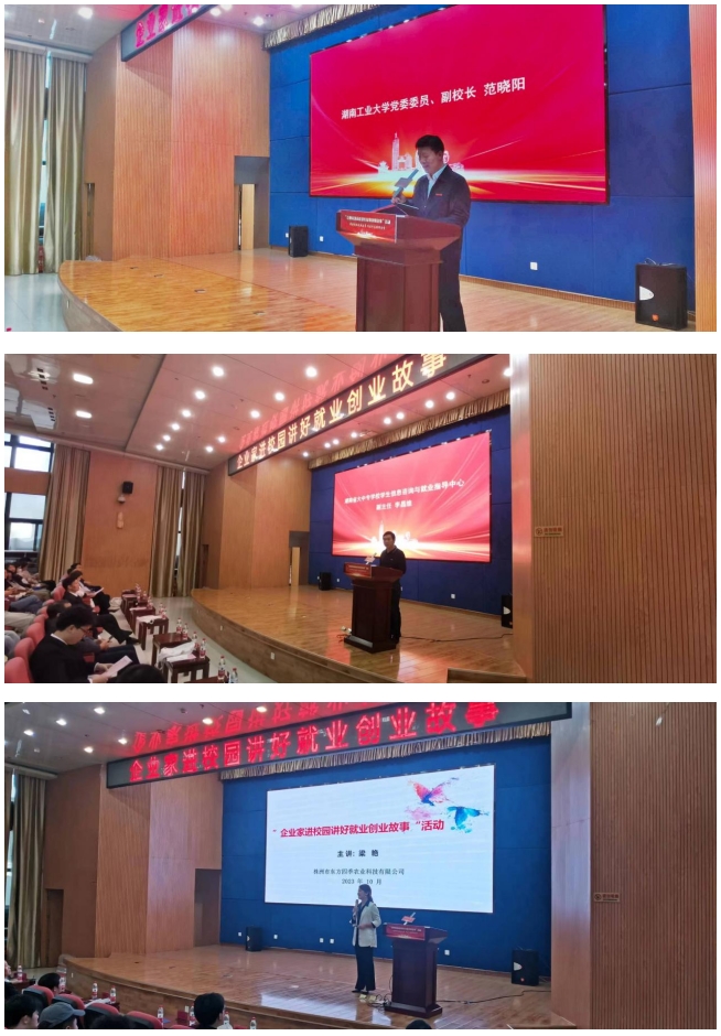 湖南财信产业基金管理有限公司运营副总裁韦韬,从财信金控情况和金融服务助力双创两个层面,诠释了“以金融活水助力百万师生创新创业”主题;株洲市东方四季农业科技有限公司董事长梁艳分享了创业故事和心得感悟,对创业者给予四点忠告:坚持、责任、回报和谨慎,并鼓励年轻人勇于追梦,实现梦想。