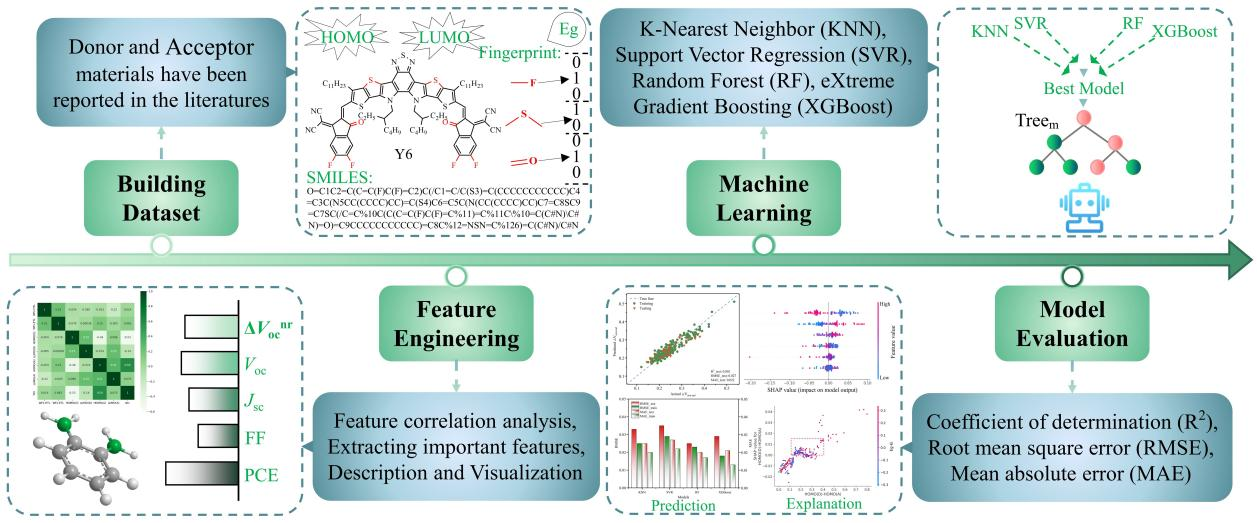近日,德赢轨道交通学院电子材料与器件团队黄迪课题组在有机光伏器件研究方面取得新进展,该研究利用机器学习挖掘活性层材料的关键结构特征并定量分析非富勒烯有机太阳能电池中非辐射电压损失的影响因素,为制备高性能有机光伏器件中非富勒烯受体材料的逆向设计提供了指导框架。