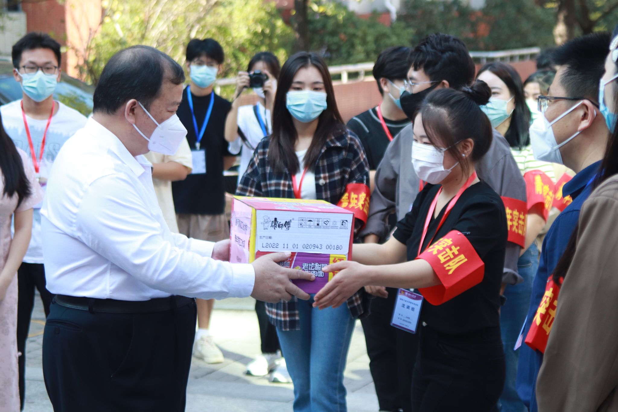 11月12日上午,校党委书记刘望来到崇仁楼,看望慰问由校团委组建的流调突击队志愿者。他代表学校党委对流调突击队志愿者们选择逆风而行、真诚奉献的担当意识表示充分肯定,为志愿者们克服诸多困难为株洲市和学校防疫搞疫分忧的精神和行为点赞。