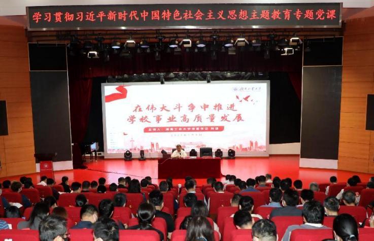 5月9日下午,学校主题教育领导小组组长、校党委书记刘望在崇乐楼报告厅讲授主题教育专题党课。省委第 27 巡回指导组成员,全体在家校领导,全校副处以上干部、各二级党组织教工党支部书记一同聆听。党委副书记王利华主持党课。