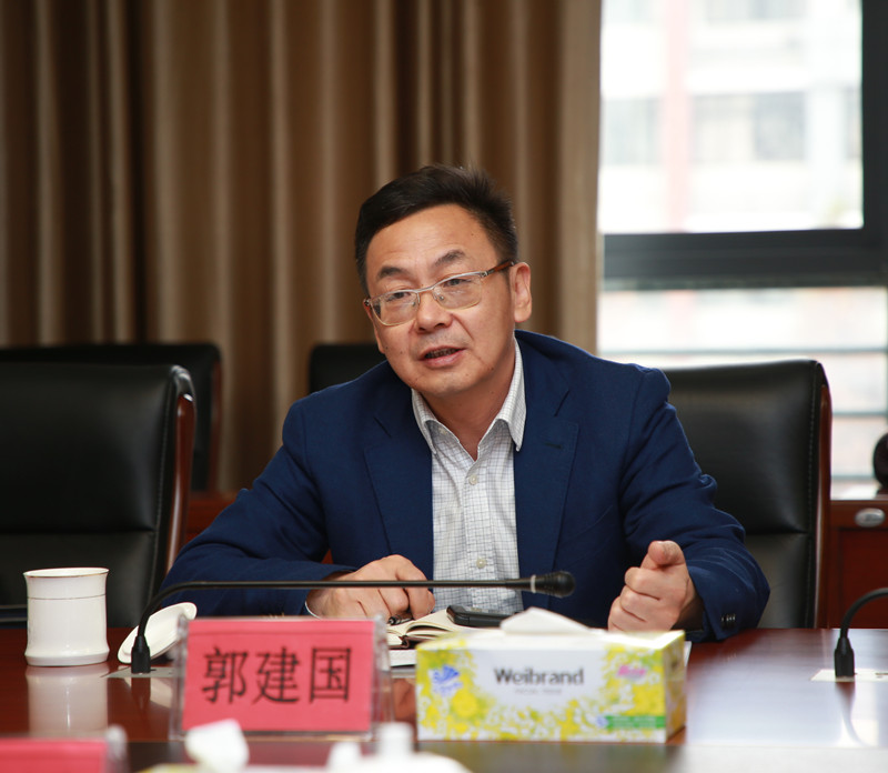 党委书记谭益民代表学校对郭建国一行来校调研表示热烈欢迎。他从强化“三个建设”,全面提高党建工作质量;坚持“三个到位”,切实提升思政育人实效;确保“三个实效”,牢牢把握意识形态工作主导权;构筑“三个保障”,确保校园安全和谐稳定;把握“三个始终”,疫情防控坚强有力;推进“三大工程”,实现学校高质量发展等六个方面介绍了学校的基本情况。他还介绍了学校“新工科”建设、产学研合作、人才培养等方面的情况。