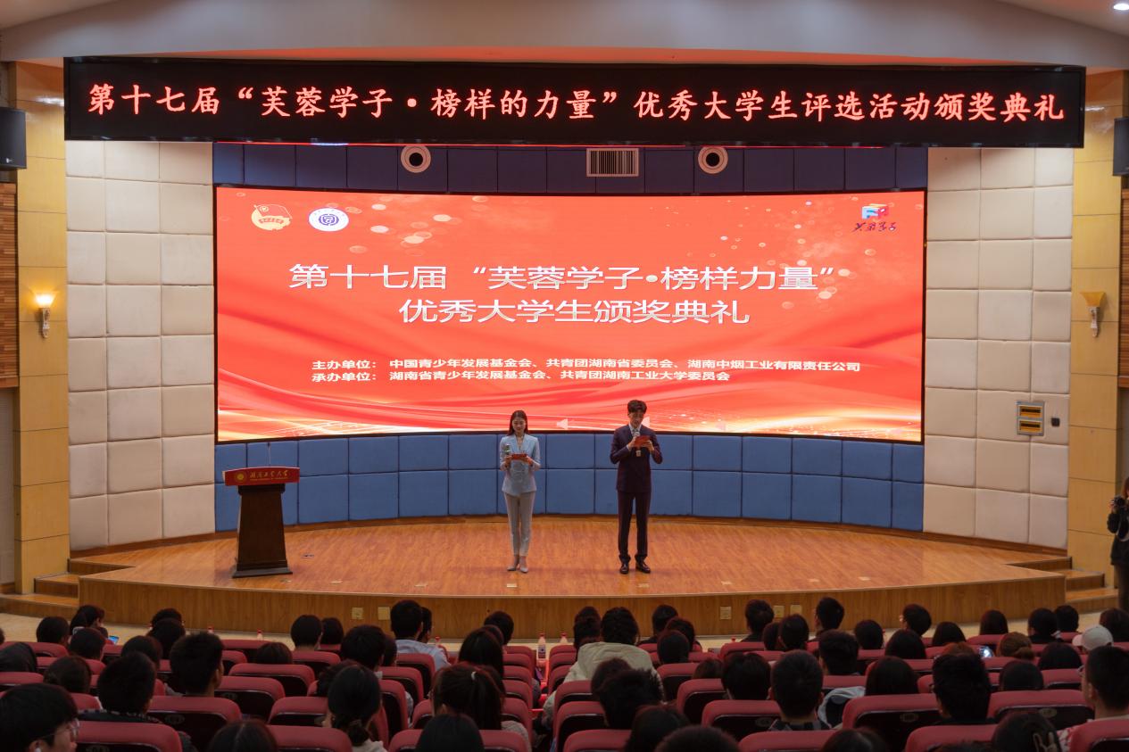 典礼上,与会领导分别为第十七届“芙蓉学子·榜样力量”优秀大学生个人和团队颁奖。