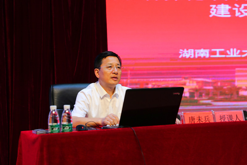 唐未兵以“爱国、励志、求真、力行——努力培养德智体美全面发展的社会主义建设者和接班人”为题,开启了首场授课。他紧紧围绕习近平总书记在北京大学师生座谈会和纪念马克思诞辰200周年大会上的重要讲话精神,结合学校具体实际,从“爱国”“励志”的角度解答了当代青年人圆什么梦、为谁圆梦的问题,从“求真”“力行”的视角回答了怎样圆梦的问题。他强调,青年人不能只把“爱国”停留在口头上,而是要把自己的理想和国家的前途、自己的人生同民族的命运紧密联系在一起,让坚毅成为我们的信念,让自强成为我们的脊梁。他号召湖工大学子要向历苦弥坚的老一辈革命先烈学习,向吃苦耐劳的同时代劳动楷模们学习,做到“知识、能力、品格”三位一体,理论联系实际,知行合一,以知促行、以行促实,成为合格的社会主义建设者和接班人,在实现中国梦的生动实践中放飞青春梦想,书写人生华章。