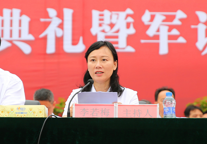副校长李若梅主持会议,并为各军训营区授旗,学生工作部(处)负责人宣读了军训建制及相关纪律要求,武警株洲支队副政委肖余强发表讲话,他要求参训教官和同学们一要提高认识,立起心向往之的高姿态;二要认真组织,立起止于至善的高标准;三要严格规范,立起文明之师的好形象。