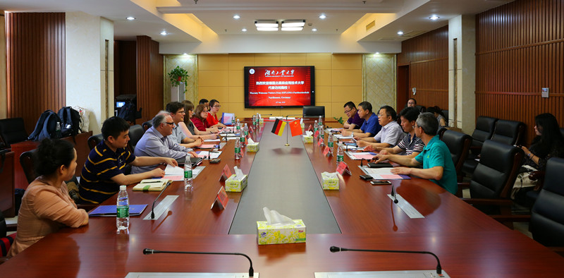 谭益民对Andreas Blindow和Michaela Zilling等一行的来访表示欢迎,并回顾了去年5月访问北黑森应用技术大学时的经历,对双方在工科优势领域开展合作办学取得的一致意见表示充分肯定。两位校长互相介绍了各自学校最新发展、国际化教育、特色教学和校际合作办学等进展情况。双方一致认为两校在许多领域有相同之处,并一致同意两校应进一步发展合作,加快跨学科的合作办学,推动两校未来的合作发展。